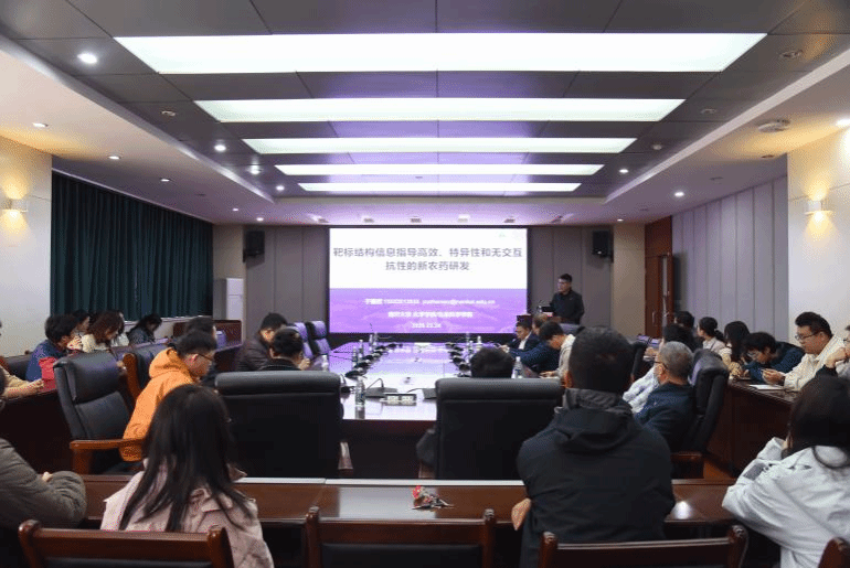 于振武博士以“靶标结构信息指导高效、特异性和无交互抗性的新农药研发”为题,详细介绍了禾谷镰孢菌等重要病原菌琥珀酸脱氢酶(SDH)的高分辨率三维结构,揭示了商品化杀菌剂的分子特异性抑制机制;还解析了禾谷镰孢菌ATP合成酶的高分辨三维结构,通过构建人工智能辅助的小分子生成模型,获得全新结构骨架的先导化合物AE5-9,为开发新型杀菌剂开辟了新路径。