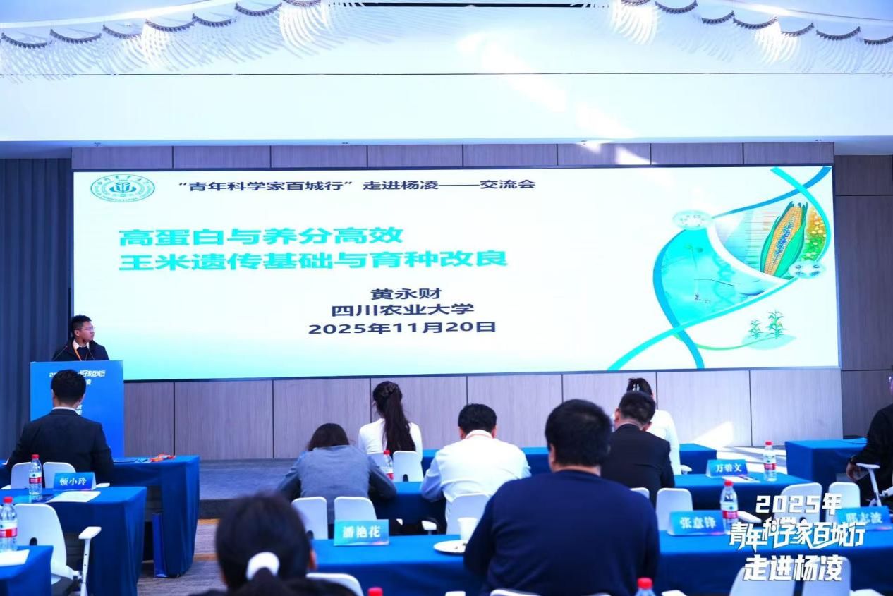 中国工程院院士、西北农林科技大学植物保护学院教授康振生以视频方式致辞。来自各农业领域的优秀青年科技工作者围绕作物育种、食品健康等前沿议题展开主旨报告,结合最新研究进展与实践思考,以“青年说”的形式生动展现了青年科技工作者在推动农业种业创新、促进现代农业高质量发展中的责任担当与创新活力。作为受邀专家,黄永财教授以“高蛋白与养分高效玉米遗传基础与育种改良”为题作学术报告,分享了在该领域的实践探索与思考。