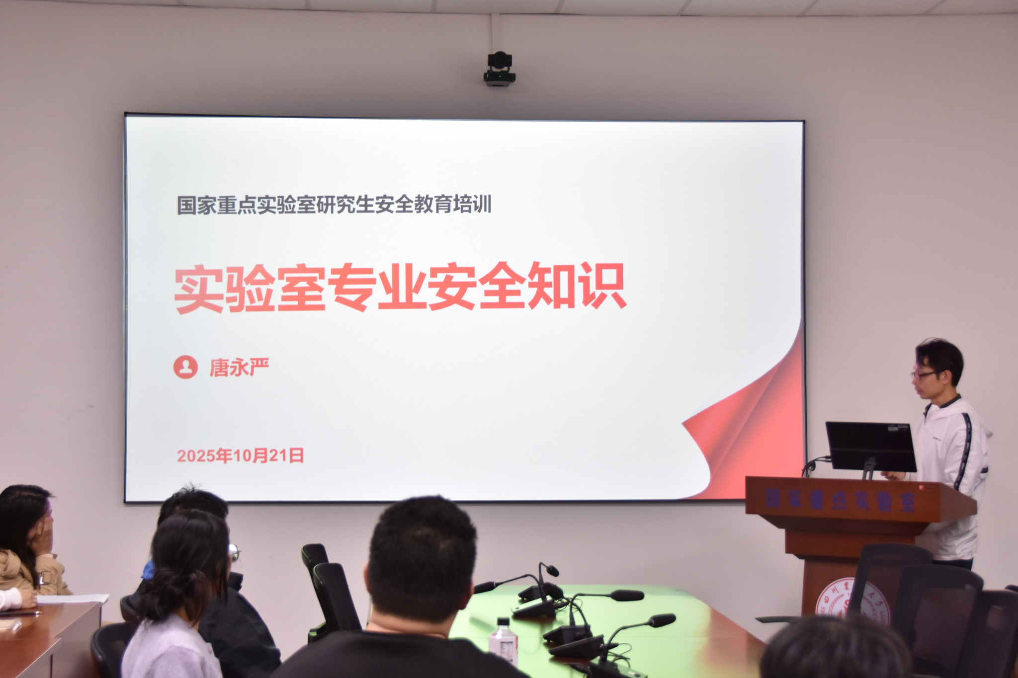 为切实提升新入学研究生的实验室安全意识,筑牢校园安全防线,国家重点实验室于10月21日在科技园B108会议室组织开展了面向2025级全体研究生的实验室安全教育培训。本次活动以系统化、专业化的安全教育为核心,旨在帮助学生树立实验安全意识、掌握仪器设备的安全操作技能,为他们上好进入实验室前的“安全第一课”。